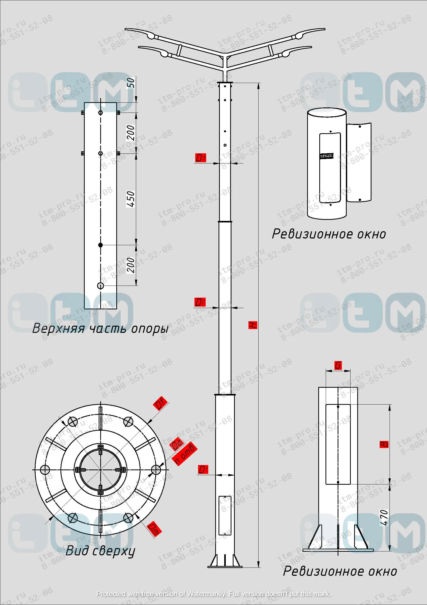 Трубчатая опора НФ – это стальной столб, для организации уличного освещения его необходимо дополнить следующими комплектующими: